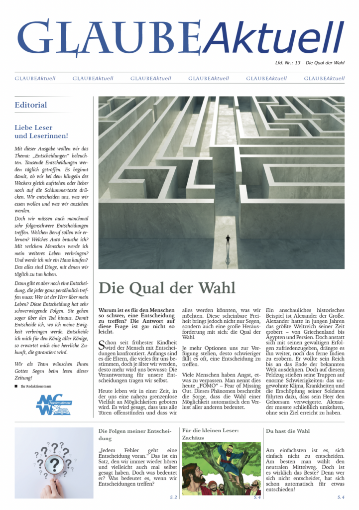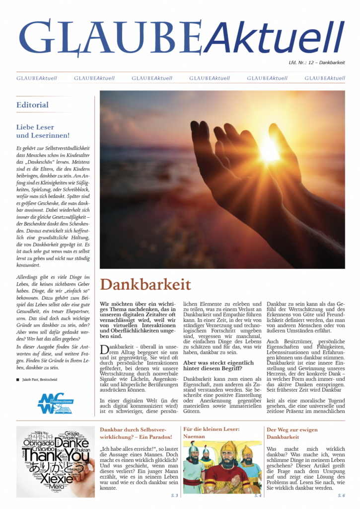 Lfd. Nr.: 14 - "Die Brücke zu Gott" zur PDF Lfd. Nr.: 13 - "Die Qual der Wahl" zur PDF Lfd. Nr.: 12 - "Dankbarkeit" zur PDF Lfd. Nr.: 11 - "Gottes Gerechtigkeit" zur PDF Lfd. Nr.: 10 - "Gottes Wort: Die Bibel" zur PDF Lfd. Nr.: 9 - Jesus spricht: "Ich bin der Weg" zur PDF Lfd. Nr.: 8 - "Frieden auf Erden - Traum oder Wirklichkeit?" zur PDF Lfd. Nr.: 7 - "Der Gute Hirte" zur PDF Lfd. Nr.: 6 - "Frohe Weihnachten!" zur PDF Lfd. Nr.: 5 - "Schuld" zur PDF Lfd. Nr.: 4 - "Himmel und Erde" zur PDF Lfd. Nr.: 3 - "Familie - Auslaufmodell?" zur PDF Lfd. Nr.: 2 - "Zukunft. Erkundung einer Sphäre zwischen Gott und Mensch" zur PDF Lfd. Nr.: 1 - "Welchen Sinn hat unser Leben?" zur PDF